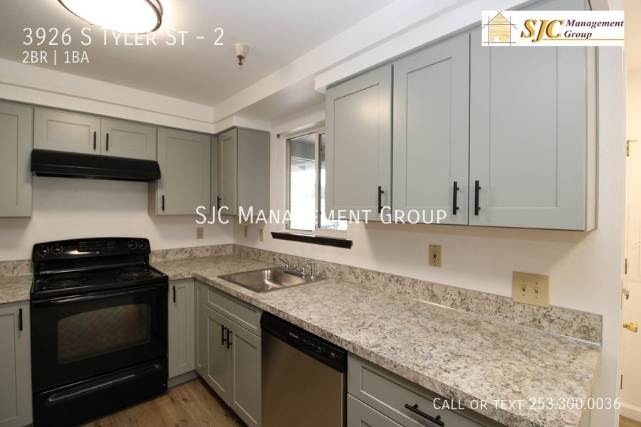 Recently updated two bedroom unit in Tacoma for rent. Features new LVP flooring throughout, new paint, close to shopping, freeway access, and restaurants. Unit includes living room, kitchen, two bedrooms, and one bathroom. Schedule a showing or take our virtual tour today!