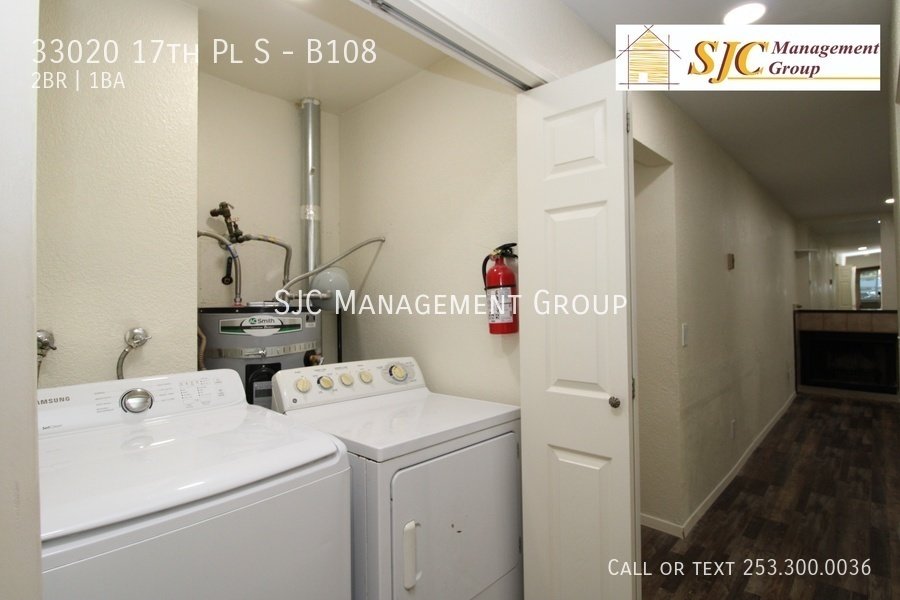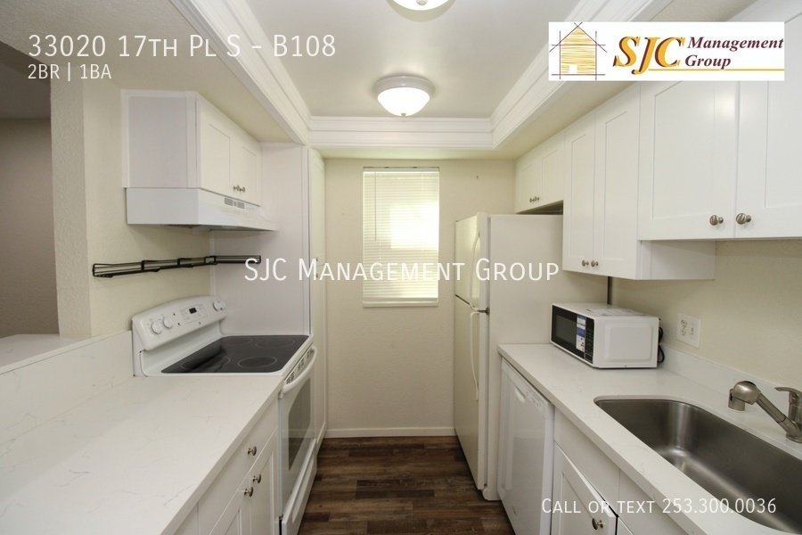 Two-bedroom unit for rent in Federal Way. The ground floor corner unit features LVP flooring, washer and dryer included, one parking space, small, covered patio with storage closet, access to club house and pool. Unit includes living room, kitchen, bathroom and two bedrooms. Schedule a showing or take a virtual tour today!