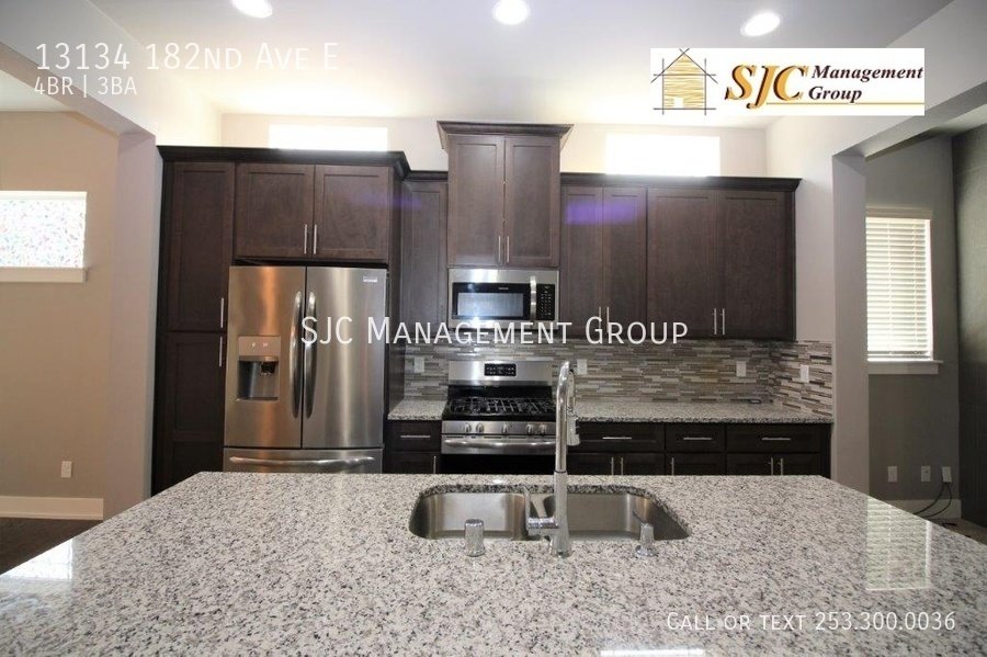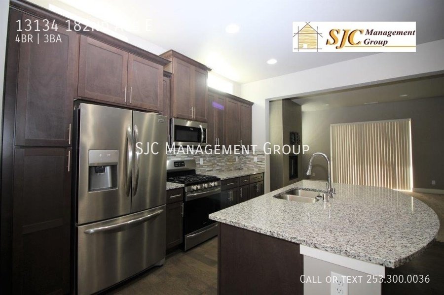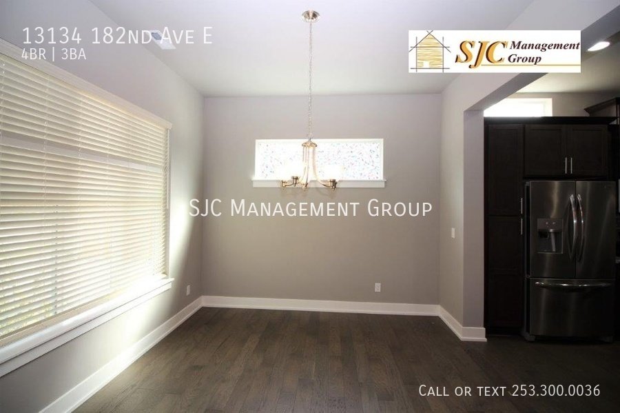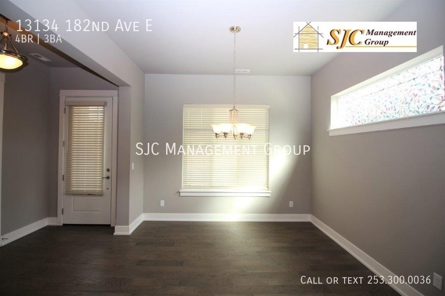 Newer home for rent in Tehaleh, Bonney Lake. Built in 2018. Tons of great upgrades on this home. Hardwood flooring, granite countertops, fenced yard. Located close to schools, walking trails, dog parks, community parks, and restaurants. Home includes entry, one bedroom, dining room, kitchen with a large island, family room, half bath on the main floor. The second story features three bedrooms, two bathrooms, and a laundry room with a washer and dryer included. Huge master suites with five-piece baths and a walk-in closet. Two-car attached garage with alley access.