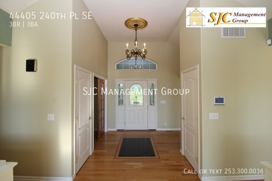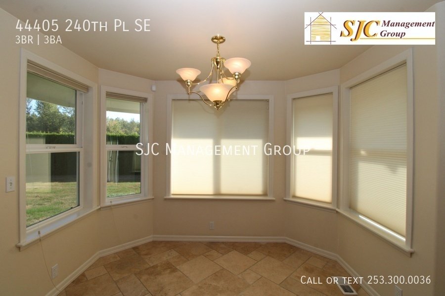 Custom built three-bedroom rambler for rent in Enumclaw. Features mountain views, private lot with mature landscaping and a gated driveway, stainless appliances, AC, large garage, and a gas fireplace. Owner will have a landscaper prune trees and bushes. Tenants will be responsible for mowing the lawn and weeding the flower beds. This property is attached to acreage; tenants will only have access to the areas inside the fenced area. Home includes living room, kitchen, dining room, three bedrooms, and three bathrooms. Schedule a showing or take a virtual tour today!