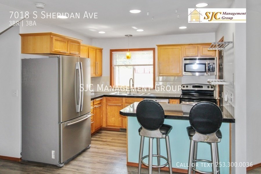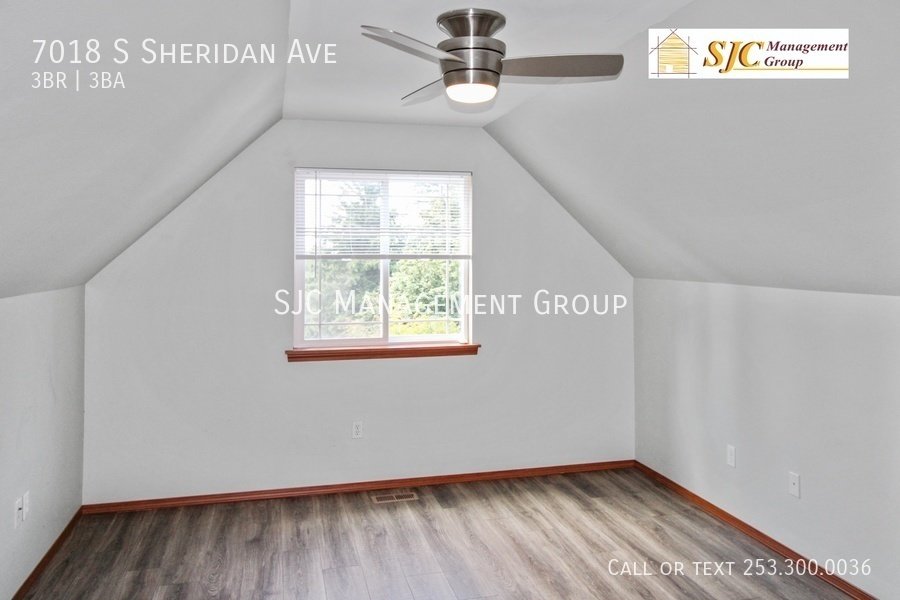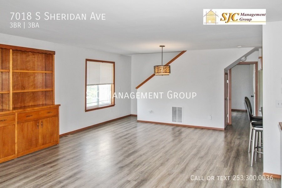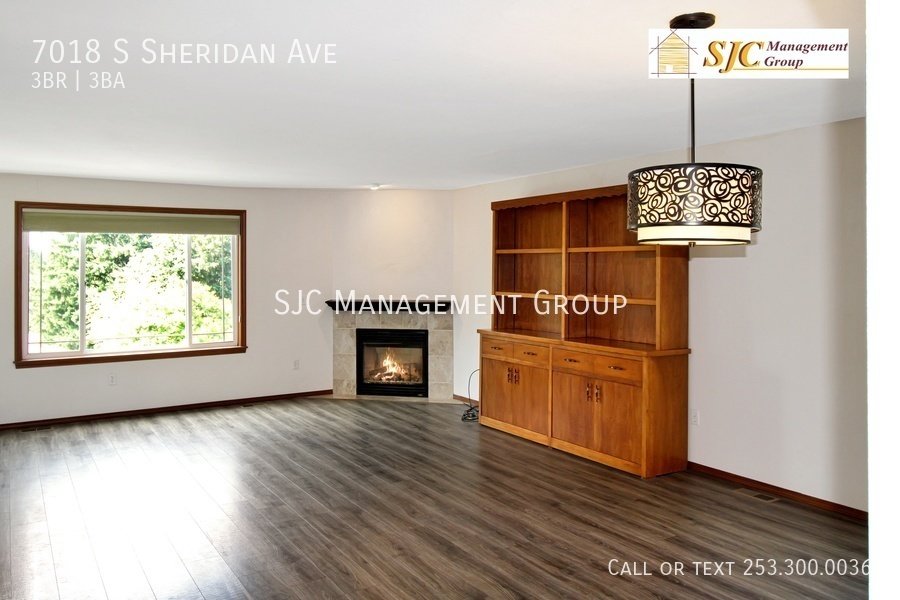 Three bedroom 2.5 bath home for rent in Tacoma, LVP flooring throughout, large living room with gas FP. Stainless steel appliances and granite counters in the kitchen, a bedroom on the main floor with it's own full bath and walk in closet. Two bedrooms and a full bath on the upper floor. On the lower floor we have a half bath and a rec room/ office with a slider opening to a private deck (could be used as a 4th bedroom). Washer and dryer included, a 2 car garage. Tenants responsible for yard care and all utilities.